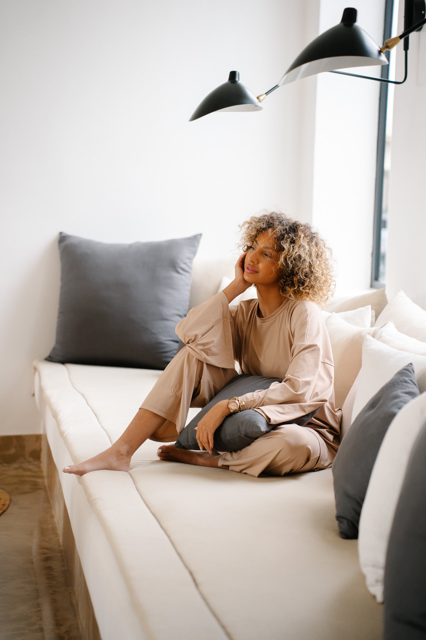 cagoule, t-shirt oversize et pantalon, conçu pour allier confort, maintien et élégance.
